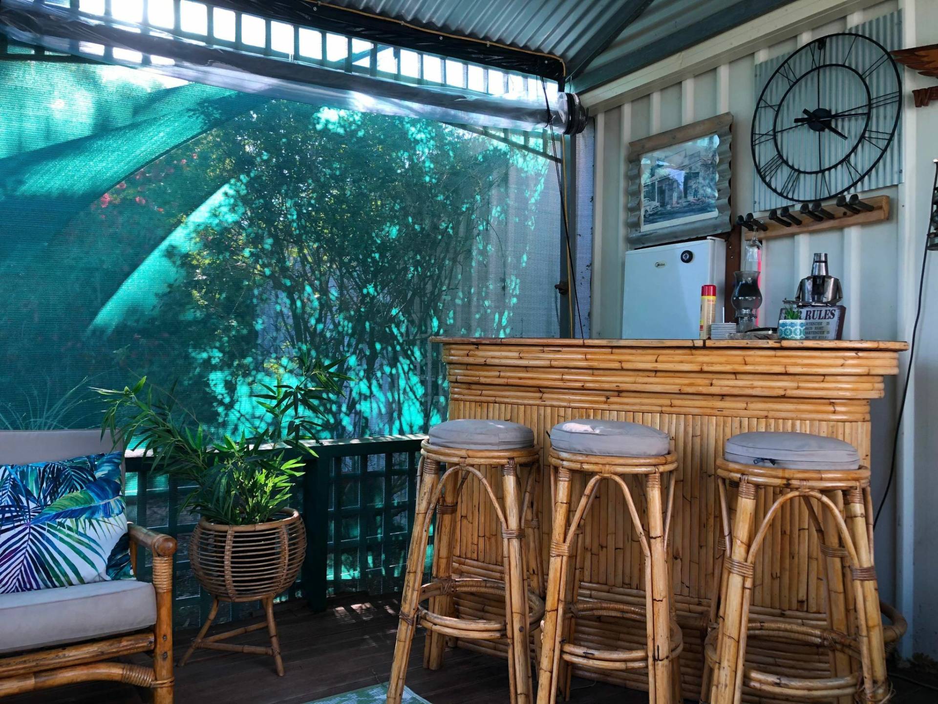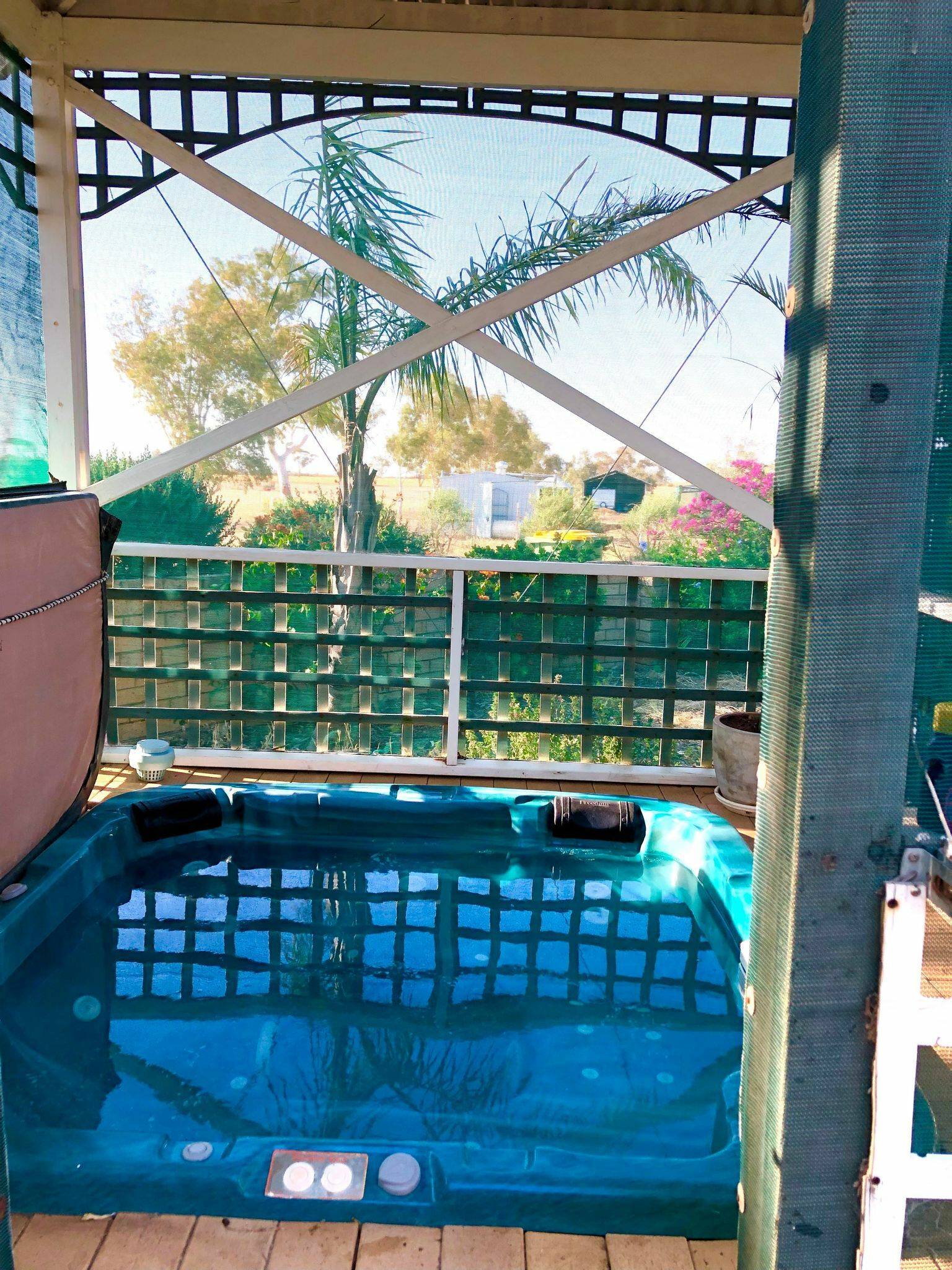 - There are super shady verandas and a magnificent large covered outdoor entertainment area sharing those wonderful views among amazing green gardens and a feature front rose garden, bar entertainment area and your own private enclosed gas hot water spa.