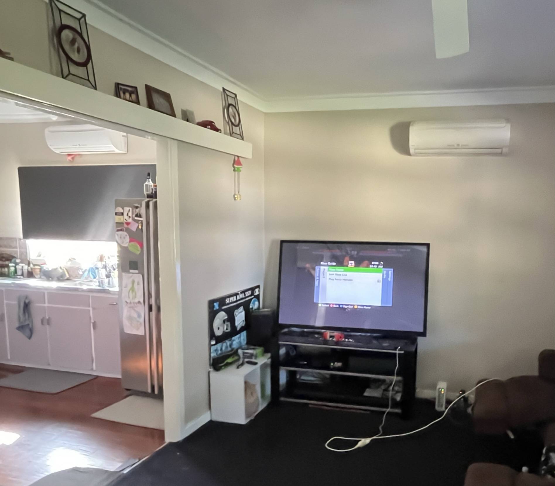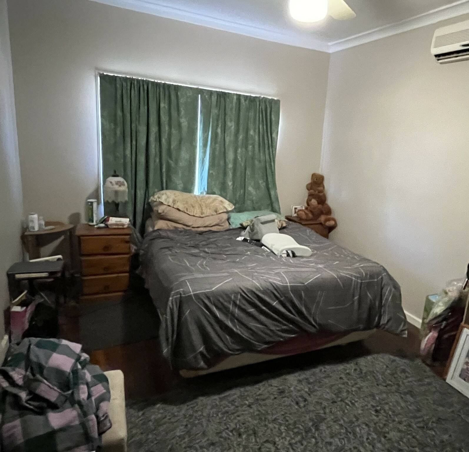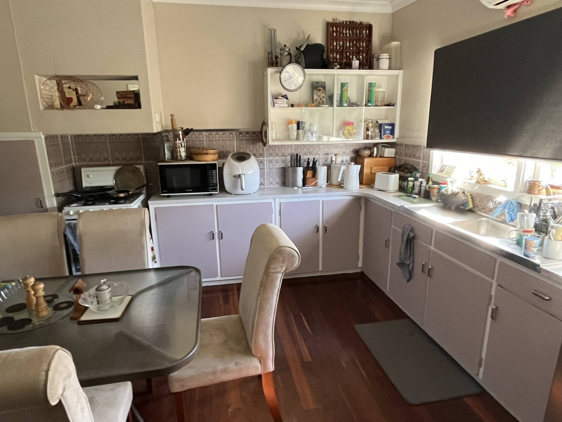 Home built 1963 constructed of fibro and iron – comprising of 3 large bedrooms – master with polished wood floor and split system – bedroom 2 with polished wood floors – bedroom 3 has carpeted floor. Large opening between lounge and kitchen – lounge has carpet and split system – kitchen has polished wood flooring, gas cooking, a fridge recess and split system. Bathroom has toilet, shower, vanity – concrete floor to laundry with wash basin – HWS electric storage. Front verandah with small carport – Rear verandah with large alfresco area.