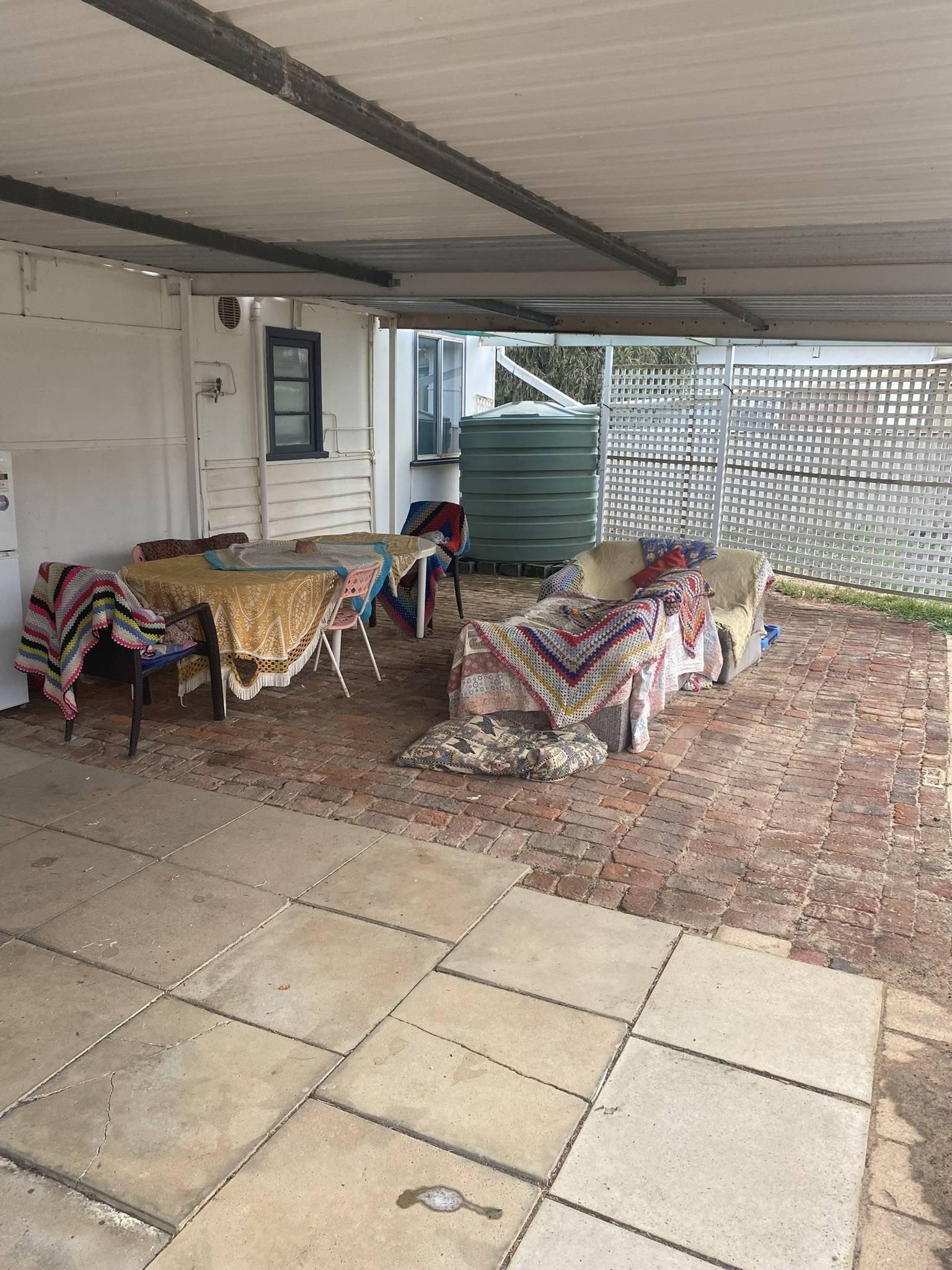 3 bedrooms with two of the bedrooms having ceiling fans. A neat kitchen with a gas cooker, vinyl floor covering that flows through to the separate dining room, a sliding door from the kitchen opens to the outside of the entertaining area. Lounge has split R/C air conditioner, shower with vanity plus tiled floor including a WC, an outside laundry with a 2nd WC located next to the laundry, a utility room off the kitchen. There is a front verandah plus a rear patio. Land rates are approx. $1,500 PA plus water and sewerage rates are approx. $1,500 PA.