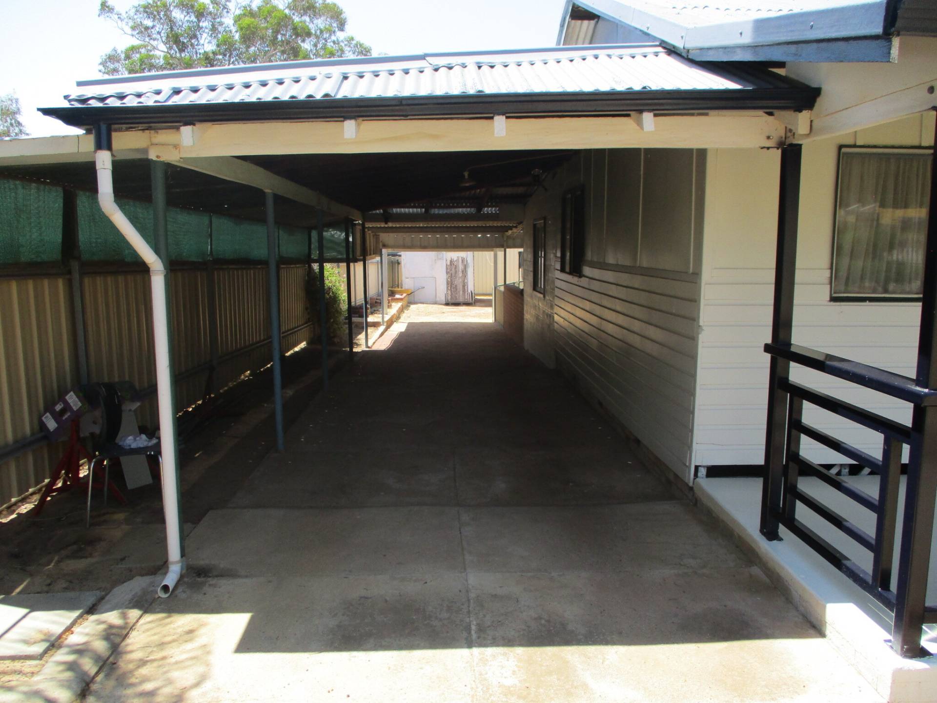 This Home has recently been painted Exterior/Interior has 3 Bedrooms, Kitchen/Dining/Lounge open plan living, Small sitting area, Bathroom spacious shower recess and Vanity, Laundry/ 2nd Shower Recess /Wc, 2nd Wc outside next to back paved Patio, Front concrete floor verandah, Rainwater storage for Gardens/Lawns, Shed, Workshop, Access to back yard, Carport, Sandstone concrete blocks for garden edging, White picket fence, Fully fence, Deep Sewer, Block Size 1105 SQM.